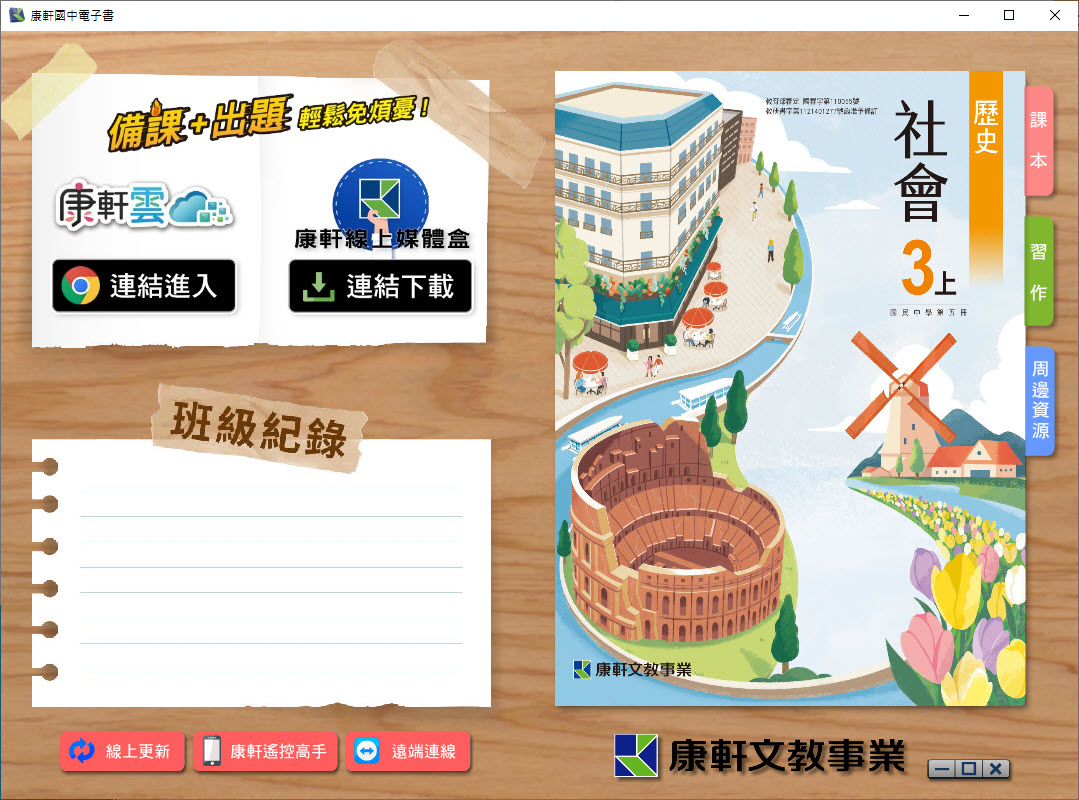 112學年上學期 國中 康軒版 歷史電子書 3年級(含課本、習作含解答、教學資源)教學光碟