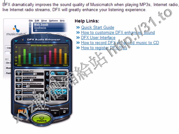 DFX for MusicMatch v9.304 英文正式版(3D環繞音場效果軟體)